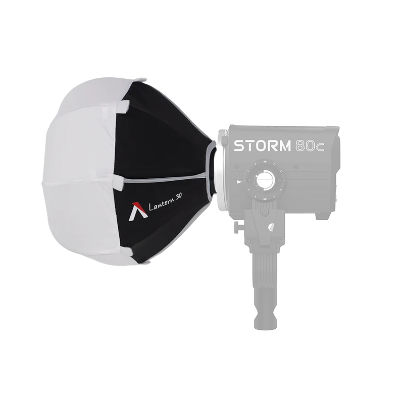 Lampion 30 to sferyczny mini softbox z dyfuzorem o średnicy 30 cm. Posiada mocowanie Mini ProLock do podłączenia do STORM 80c. Lampion 30 zawiera regulowany spód do kontrolowania rozprzestrzenienia światła.