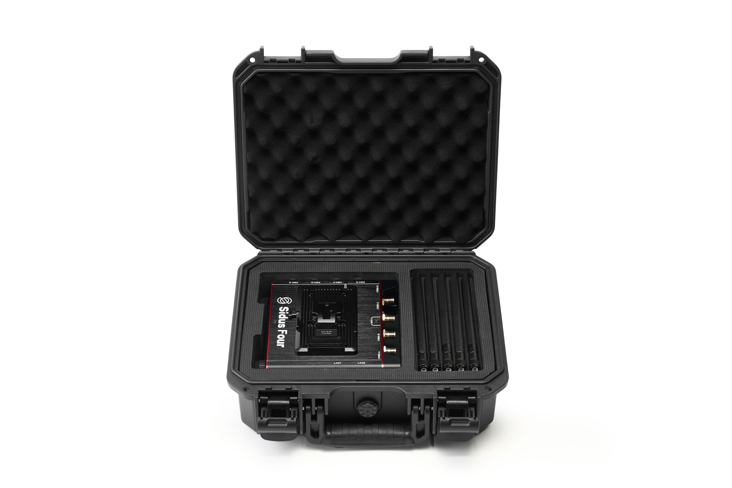 Sidus Four to czterowersowy nadajnik CRMX z wbudowanym routerem bezprzewodowym i węzłem ethernetowym, obsługującym do czterech dodatkowych przewodowych wszechświatów DMX. Sidus Four może jednocześnie transmitować do 8 wszechświatów DMX.